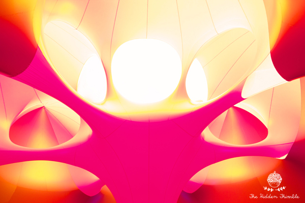 This is the second time we’ve been inside the colour installation by the Architects of Air and it’s a trippy feeling, like being on a hyper-real sci-fi set when your eyes gaze the web of fabric while your brain tries to catch up on how it perceives light and colour. Its mind alteration magic is soothing and surreal… and then you finally realize what’s so fun about it… it’s like being in a giant jumping castle! Seriously when you look on the outside there’s no better way to describe it.